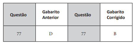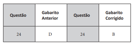 Após divulgação do gabarito preliminar, pelo Instituto Nacional de Estudos e Pesquisas Educacionais Anísio Teixeira (Inep) houve uma alteração. No caderno 1 a questão 77 e no caderno 2 a questão 24.